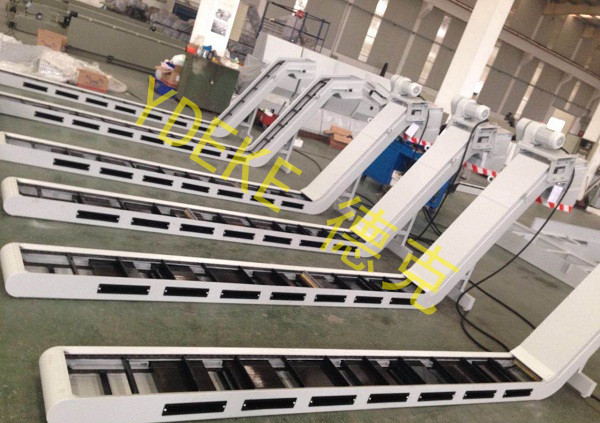 刮板排屑机适用于输送块状粉碎或粉状切屑,非常不适合含有纤维状长条型切屑的输送,否则会引起切屑缠绕链条